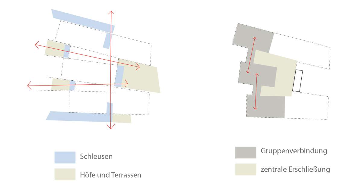 Die Gruppenräume zeichnen sich als einzelne „Pavillons“ im Garten ab und öffnen sich großzügig Richtung Westen und Süden zu Garten und Pergola-Terrassen-Räumen.