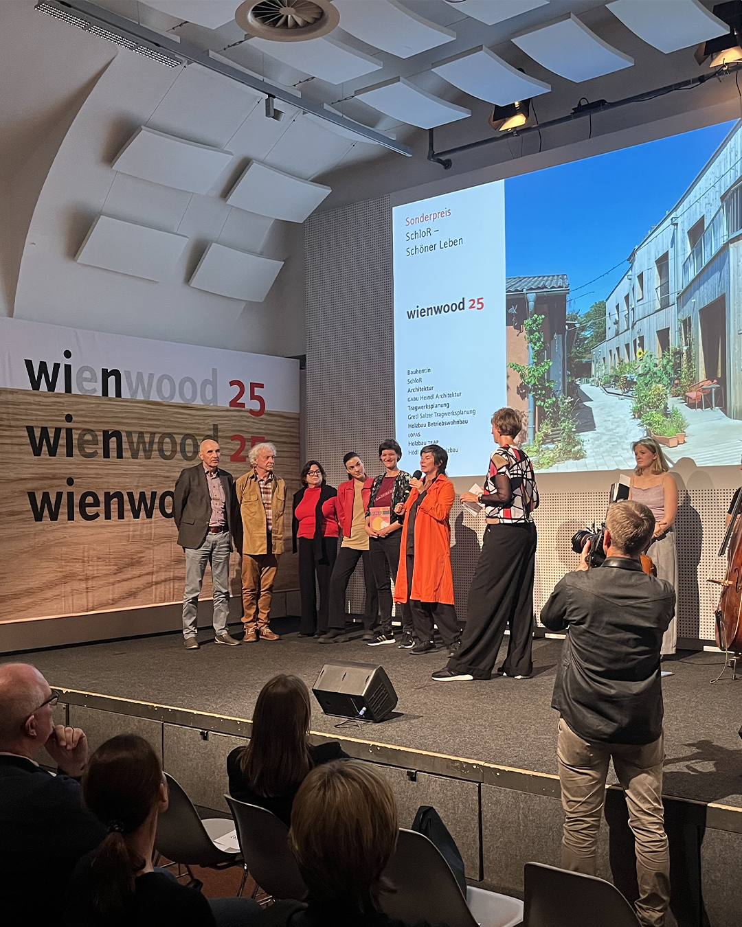 Das Projekt SchloR wird nicht mit einem Sonderpreis ausgezeichnet, weil es Holz auf konstruktiv besonders innovative Weise verbaut. Im Gegenteil: Hier geht es um eine andere Art des Denkens, die die Zukunft des Wohnens und Bauens dezidiert selbst in die Hand nimmt.