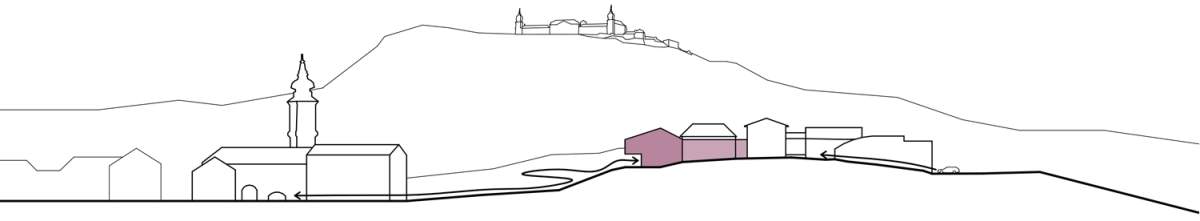 The design of the structure develops a specific interior/exterior relationship in each cardinal direction: loggia, garden access and line of sight to Göttweig Abbey for the children’s group, covered terrace and panoramic view from the parish church to the Abbey for recreation room, multi-function room and music school foyer; the connecting wooden pavilion opens to the central kindergarten plaza with generous terraces.