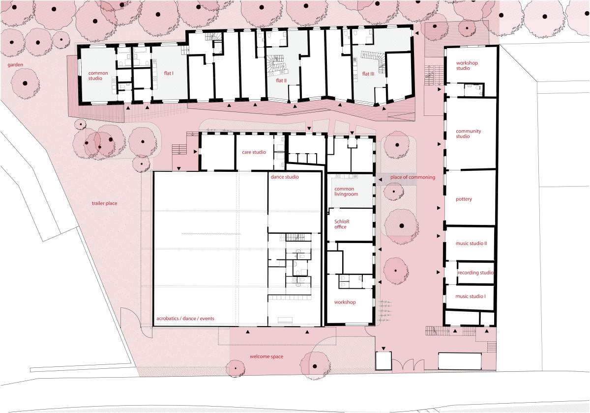 SchloR is a Viennese group of friends who has found a plot of land in Simmering with existing buildings they refurbished, reconstructed, renewed and enlarged with the goal to collectively manage the site and live there. In contrast to capitalist competition, however, their goal is not to maximise profits, but rather the prospect of self-determination and fair rent without an expiry date. They use a model which excludes any further speculation by co-establishing a similar form to the tenement housing syndicate in Germany, called habiTaT in Austria. More information can be found at: habitat