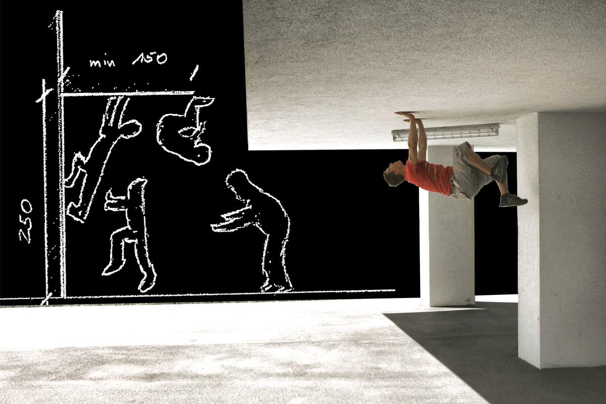 Parkour is a way to act upon and convert the city: free-running is a matter of performance in the urban everyday and of challenging city usage in general. While there are many places with signs saying that playing is not allowed here, Parkour as an unusual way of playfully moving through and within the city cannot be forbidden. What acts as a roof for everyday city users may be the landing zone or the jump-off platform for traceurs, who transform the regulated paths and designated spaces for movement. In this way Parkour traceurs question urban regulations as much as they undermine gravitational force; functionalist spaces for movement are re-evaluated as playing or training ground.