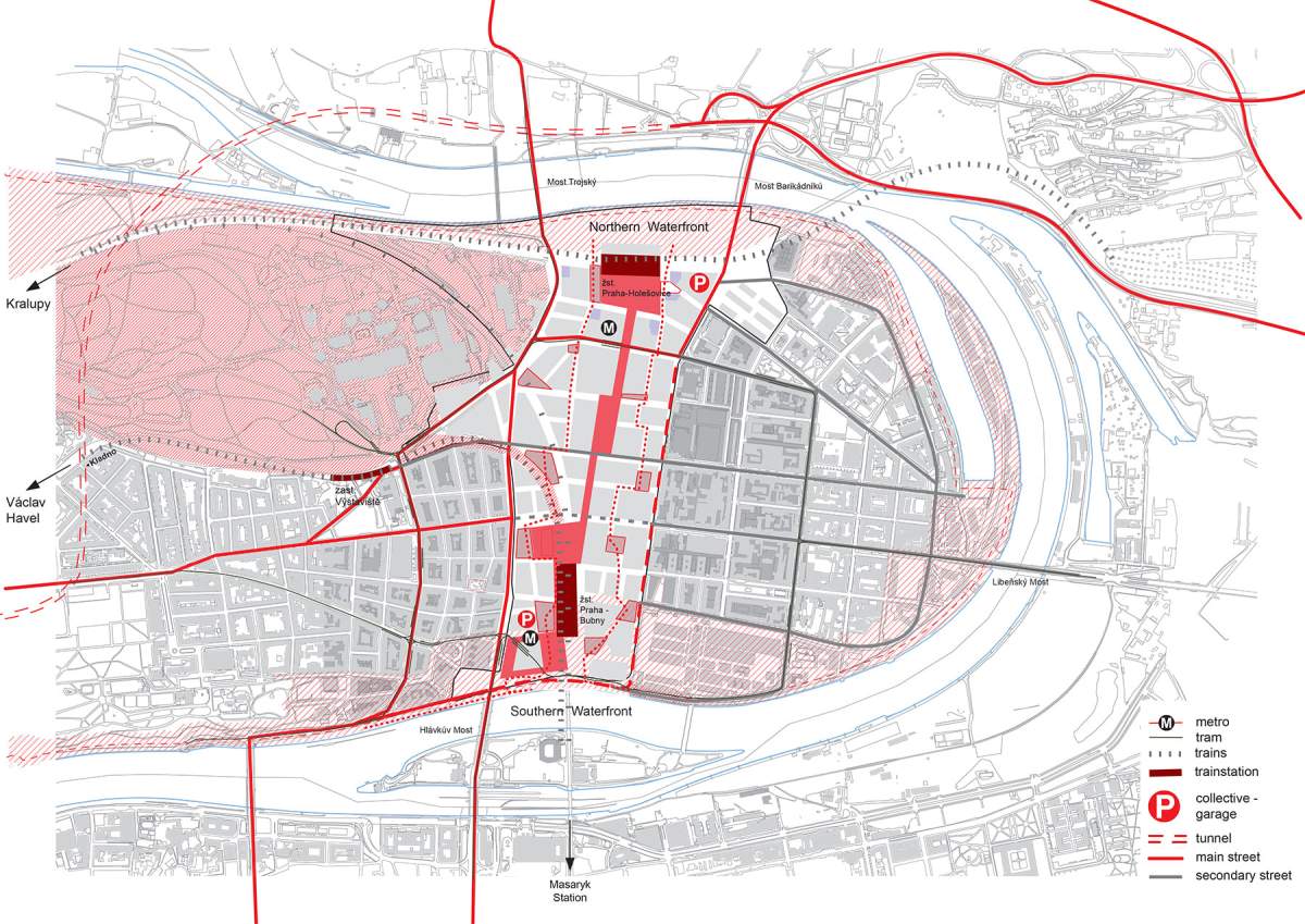 How do we imagine a city for the 21st century in the middle of Europe? Industrial history has left a piece of land (103 hectares) in the middle of Prague 7 with the chance to conceptualize a future city part.